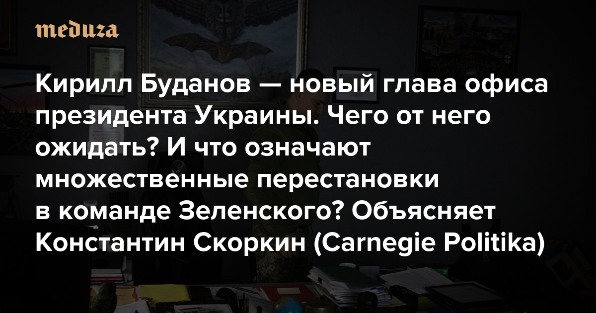 Антикоррупционные расследования вынудили Владимира Зеленского уволить главу своей администрации Андрея Ермака. На его место он назначил руководившего Главным управлением разведки Кирилла Буданова. С одной стороны, такое назначение укрепляет президентскую власть, а с другой, Буданов — третий по популярности политик в стране и новая должность может заметно усилить его позиции и рейтинг. Более того, уже сейчас соцопросы обещают ему победу во втором туре над Зеленским на будущих выборах президента. К чему в итоге приведет назначение Буданова и другие масштабные перестановки в команде Зеленского, объясняет украинский журналист Константин Скоркин в материале для проекта Carnegie Politika. «Медуза» публикует этот текст целиком.