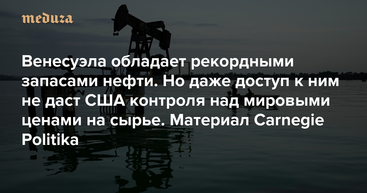 Когда речь заходит о целях американской интервенции в Венесуэле, то сразу вспоминают про то, что нефтяные запасы этой страны — крупнейшие на планете. Даже сам Дональд Трамп прямо заявляет, что американские компании способны резко увеличить добычу в Венесуэле, чтобы возместить многомиллиардные убытки из-за национализаций. А миллиардер Олег Дерипаска предупреждает, что контроль над венесуэльской нефтью позволит США управлять мировыми ценами на нефть и тем самым влиять на экономику России. Однако на деле такие оценки перспектив нефтяной отрасли Венесуэлы выглядят слишком оптимистичными, пишет в материале для проекта Carnegie Politika старший научный сотрудник Берлинского центра Карнеги по изучению России и Евразии Сергей Вакуленко. «Медуза» публикует этот материал полностью.