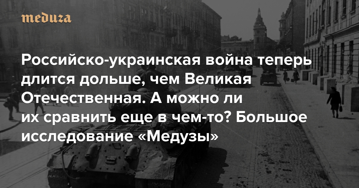 Российско-украинская война теперь длится дольше, чем Великая Отечественная. А можно ли их сравнить еще в чем-то? К сожалению для Украины, именно она платит цену, по некоторым показателям сопоставимую с СССР. Большое исследование «Медузы»