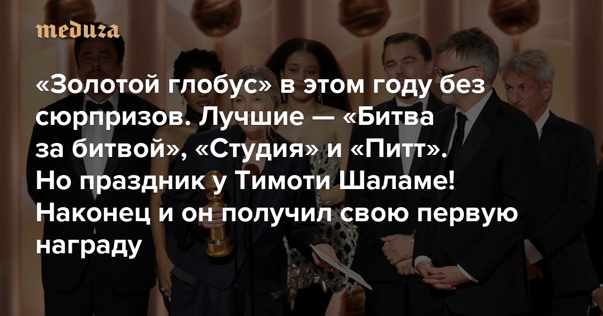 «Золотой глобус» в этом году без сюрпризов. Лучшие — «Битва за битвой», «Студия» и «Питт» Но праздник у Тимоти Шаламе! Наконец и он получил свою первую награду