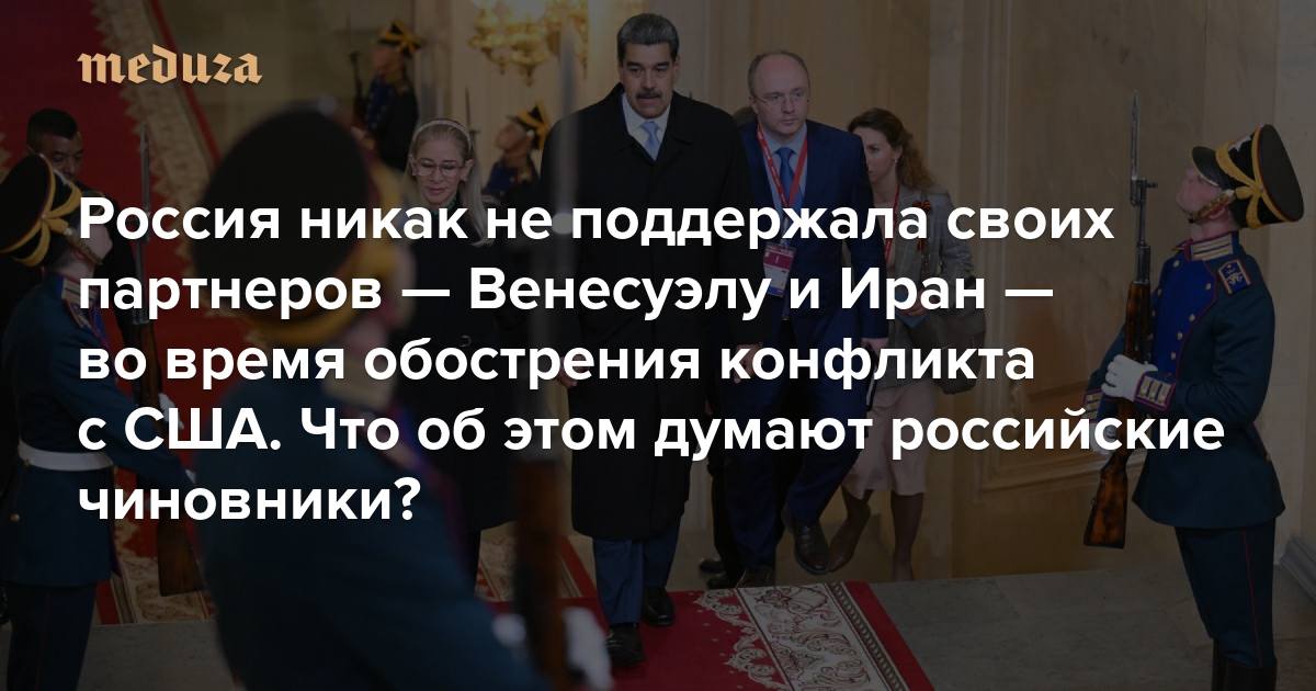 Сотрудник полпредства в Центральном федеральном округе говорит «Медузе», что обсуждал со знакомыми чиновниками возможную военную операцию США в Венесуэле до того, как она случилась, но тогда никто из них не верил, что Вашингтон действительно пойдет на смещение действующей власти. «Как-то слишком смело, тем более, что вроде бы [Венесуэла] наш союзник. Звучали заявления, что Россия придет на помощь, если что. В итоге и США смогли, и помогать никто не стал. Эти события озадачили», — говорит источник «Медузы». Он добавляет, что в то время ожидал от российского руководства какой-то реакции, но сейчас понимает, почему ее не было: «На ответ просто нет ресурсов, они все направлены на СВО».