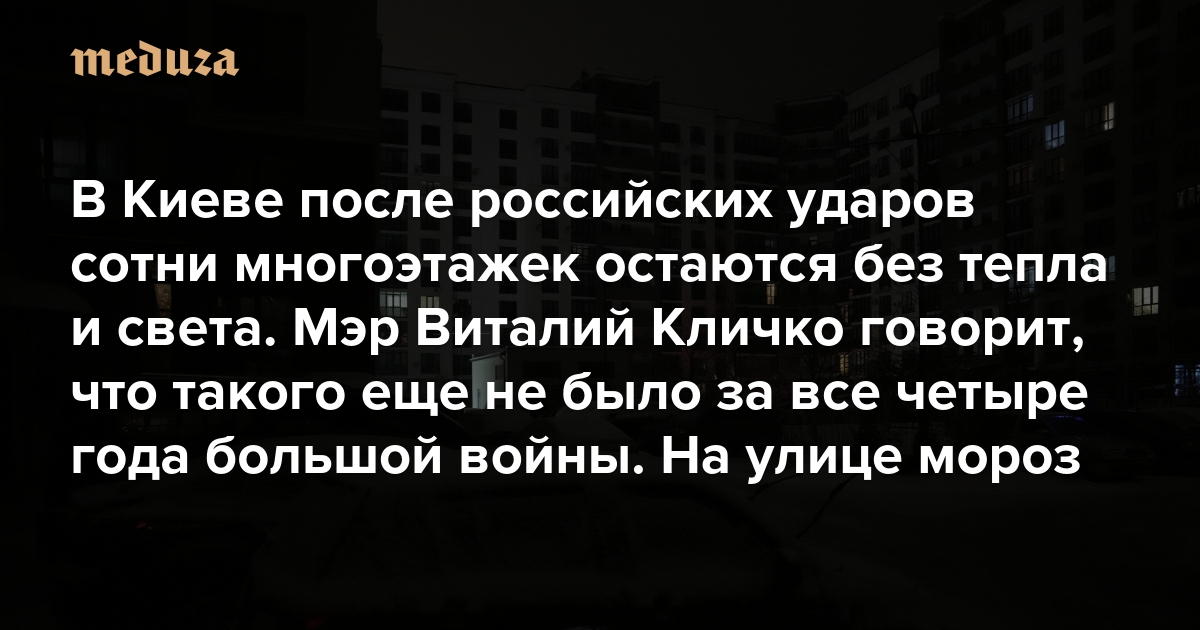В Киеве после российских ударов сотни многоэтажек остаются без тепла и света Мэр Виталий Кличко говорит, что такого еще не было за все четыре года большой войны. На улице мороз