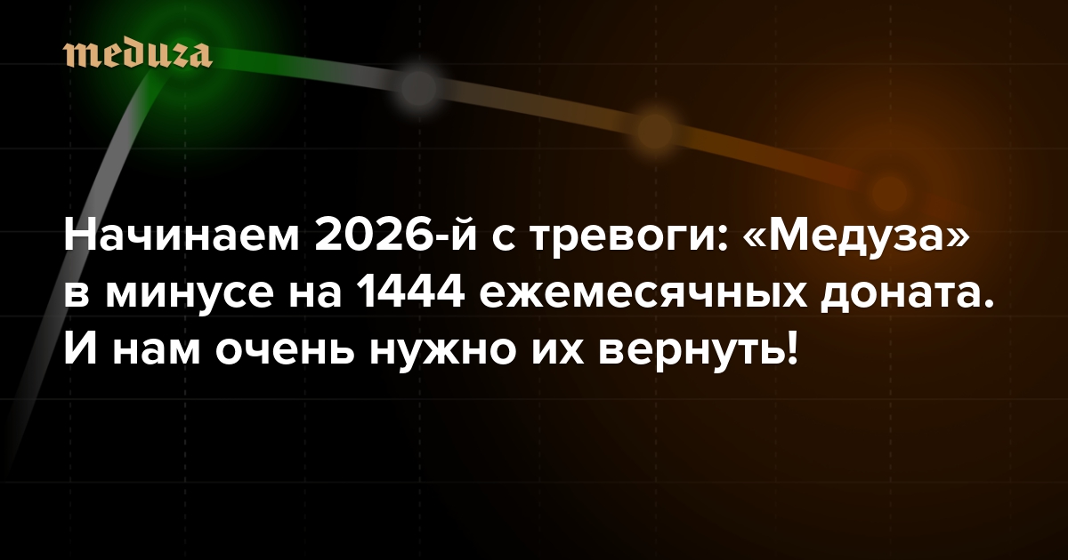 Как «Медуза» начинает 2026 год? Если коротко — с тревогой Мы в минусе на 1444 ежемесячных доната. И нам очень нужно их вернуть!