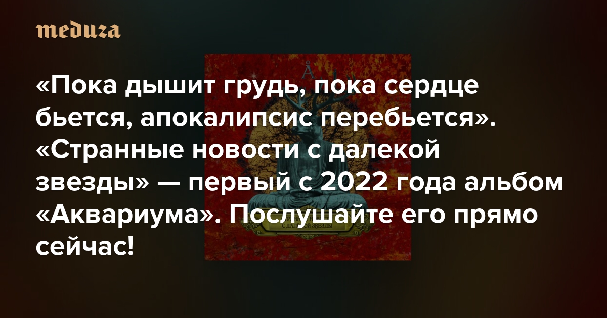 «Пока дышит грудь, пока сердце бьется, апокалипсис перебьется» «Странные новости с далекой звезды» — первый с 2022 года альбом «Аквариума». Послушайте его прямо сейчас!