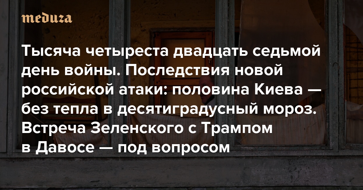 Война Тысяча четыреста двадцать седьмой день. Последствия новой российской атаки: половина Киева — без тепла в десятиградусный мороз. Встреча Зеленского с Трампом в Давосе — под вопросом