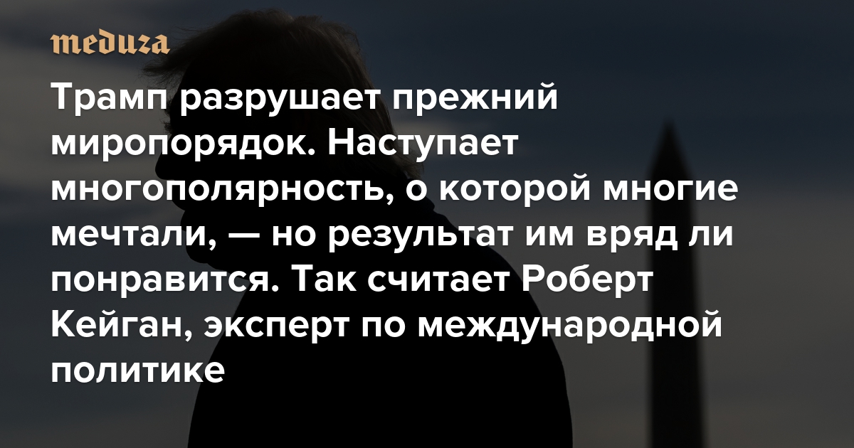 Трамп разрушает прежний мир — и возвращает его в XIX век. Наступает многополярность, о которой многие мечтали, — но результат им вряд ли понравится Так считает Роберт Кейган, один из самых влиятельных экспертов по международной политике