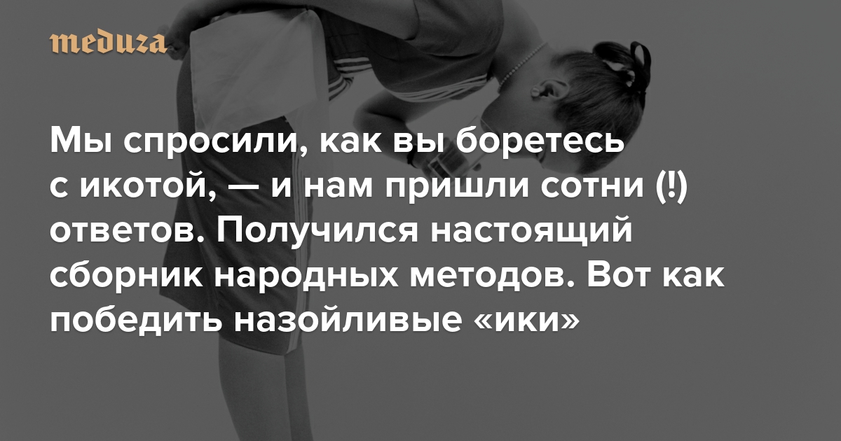 Мы спросили, как вы боретесь с икотой, — и нам пришли сотни (!) ответов. Получился настоящий сборник народных методов Как пить и дышать, что есть и говорить (не только «перейди на Федота»), о чем и в какой позе думать, чтобы победить назойливые «ики»