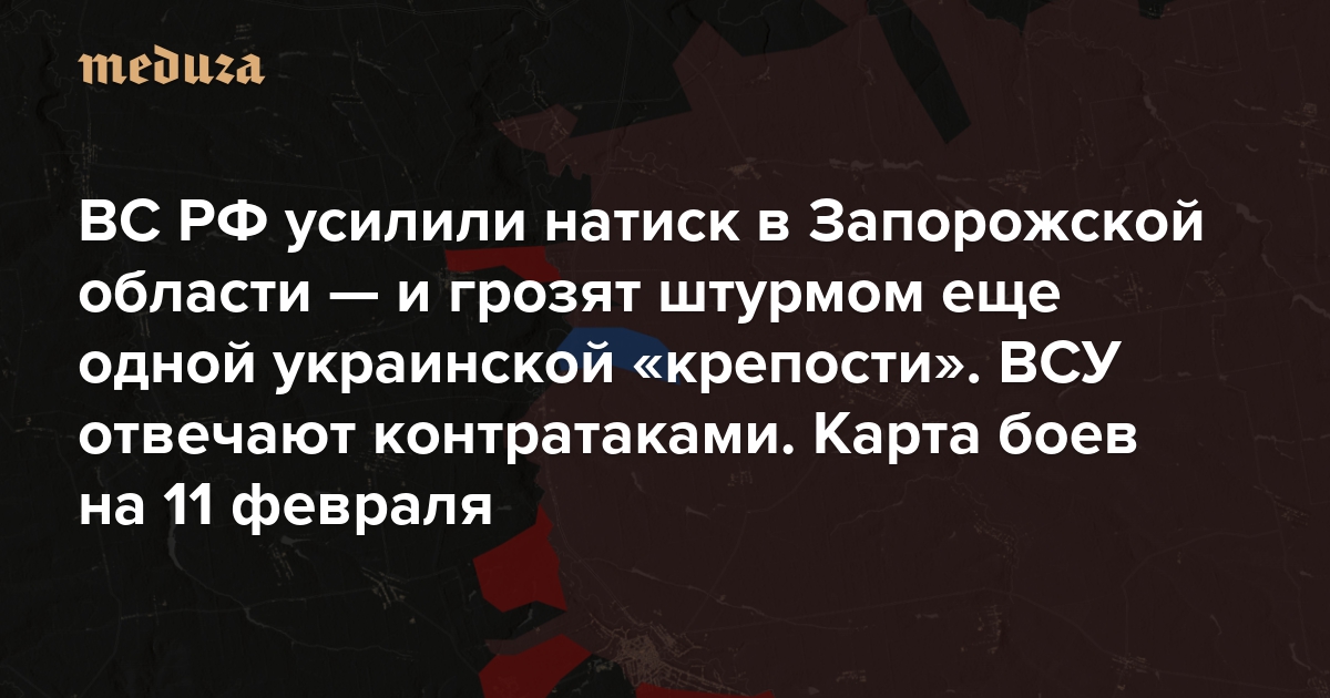 ВС РФ усилили натиск в Запорожской области — и грозят штурмом еще одной украинской «крепости». ВСУ перебрасывают резервы и идут в контратаки Уже скоро резервы могут понадобиться и на более важном участке фронта. Карта боев на 11 февраля