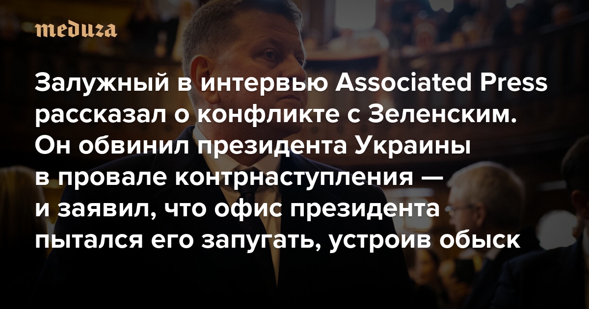 Залужный в интервью Associated Press рассказал о конфликте с Зеленским Он обвинил президента Украины в провале контрнаступления — и заявил, что офис президента пытался его запугать, устроив обыск