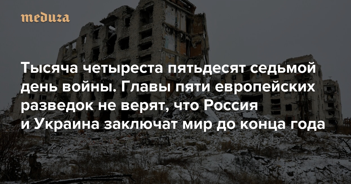 Война Тысяча четыреста пятьдесят седьмой день. Главы пяти европейских разведок не верят, что Россия и Украина заключат мир до конца года