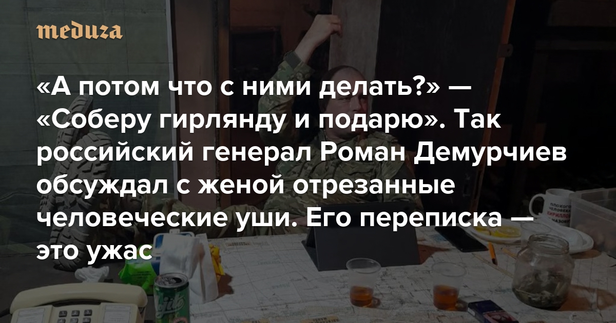 «А потом что с ними делать?» — «Соберу гирлянду и подарю» Так российский генерал Роман Демурчиев обсуждал с женой отрезанные человеческие уши. Его переписка — это ужас