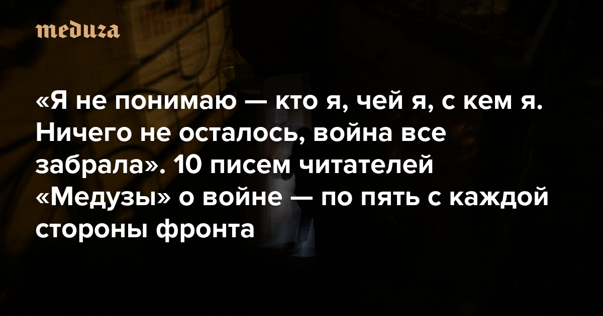 «Я не понимаю — кто я, чей я, с кем я. Ничего не осталось, война все забрала» Уже много месяцев мы публикуем письма читателей о войне. К четвертой годовщине мы выбрали 10 историй — пять от украинцев и пять от россиян