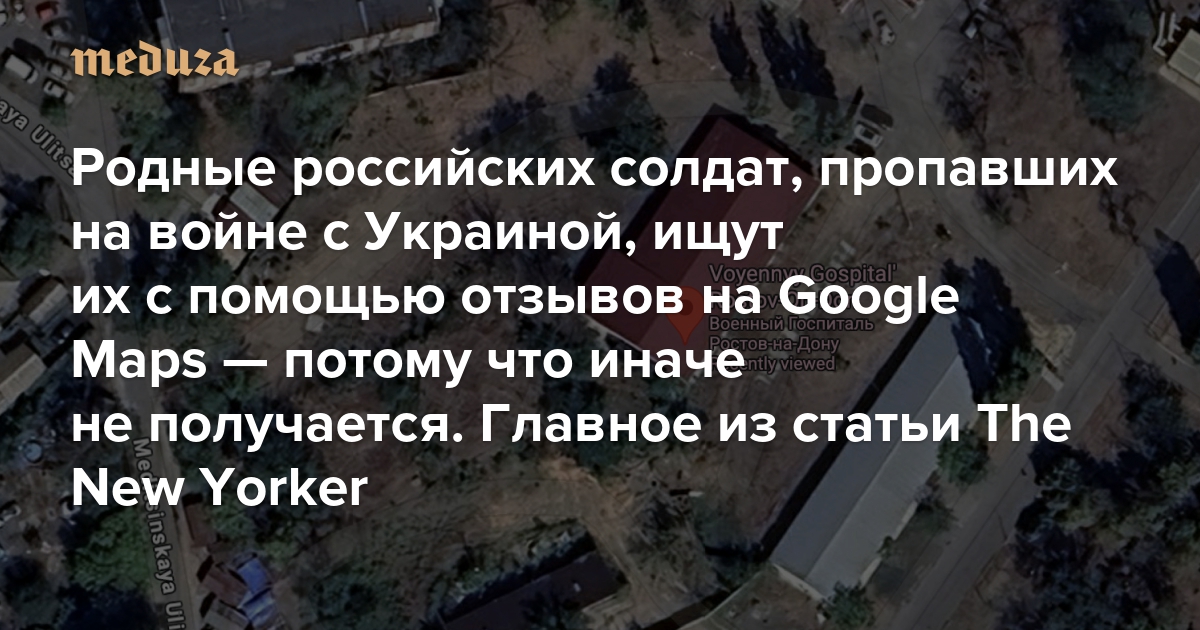 Родные российских солдат, пропавших на войне с Украиной, ищут их с помощью отзывов на Google Maps — потому что иначе не получается Главное из статьи The New Yorker