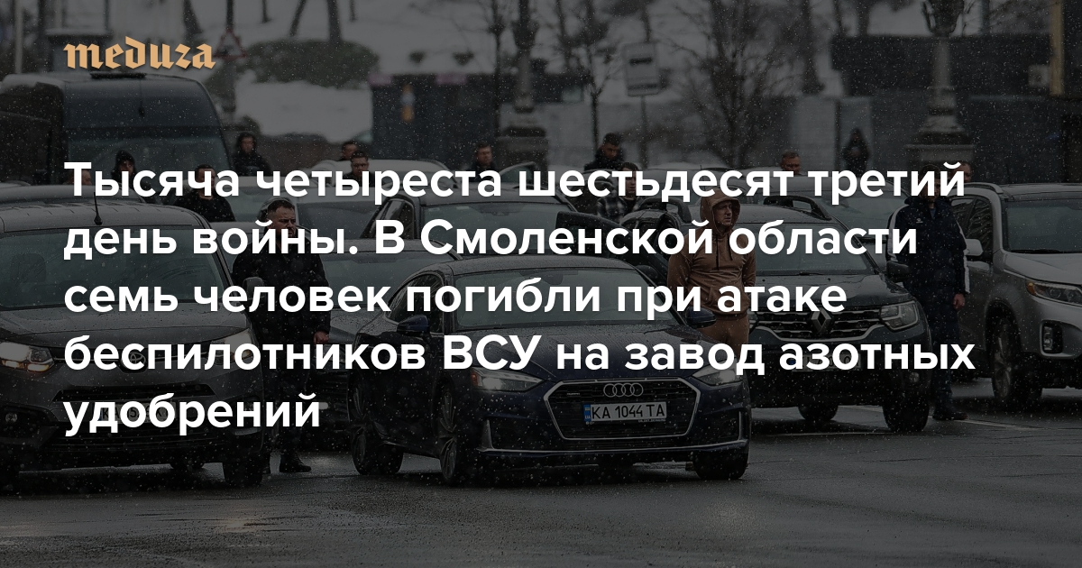 Война Тысяча четыреста шестьдесят третий день. В Смоленской области семь человек погибли при атаке беспилотников ВСУ на завод азотных удобрений