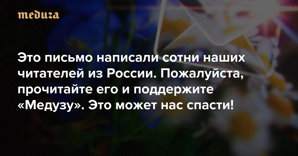 «Даже маленькое окошко с видом на мир помогает спастись от безумия» Это письмо написали сотни наших читателей из России. Пожалуйста, прочитайте его и поддержите «Медузу». Это может нас спасти!