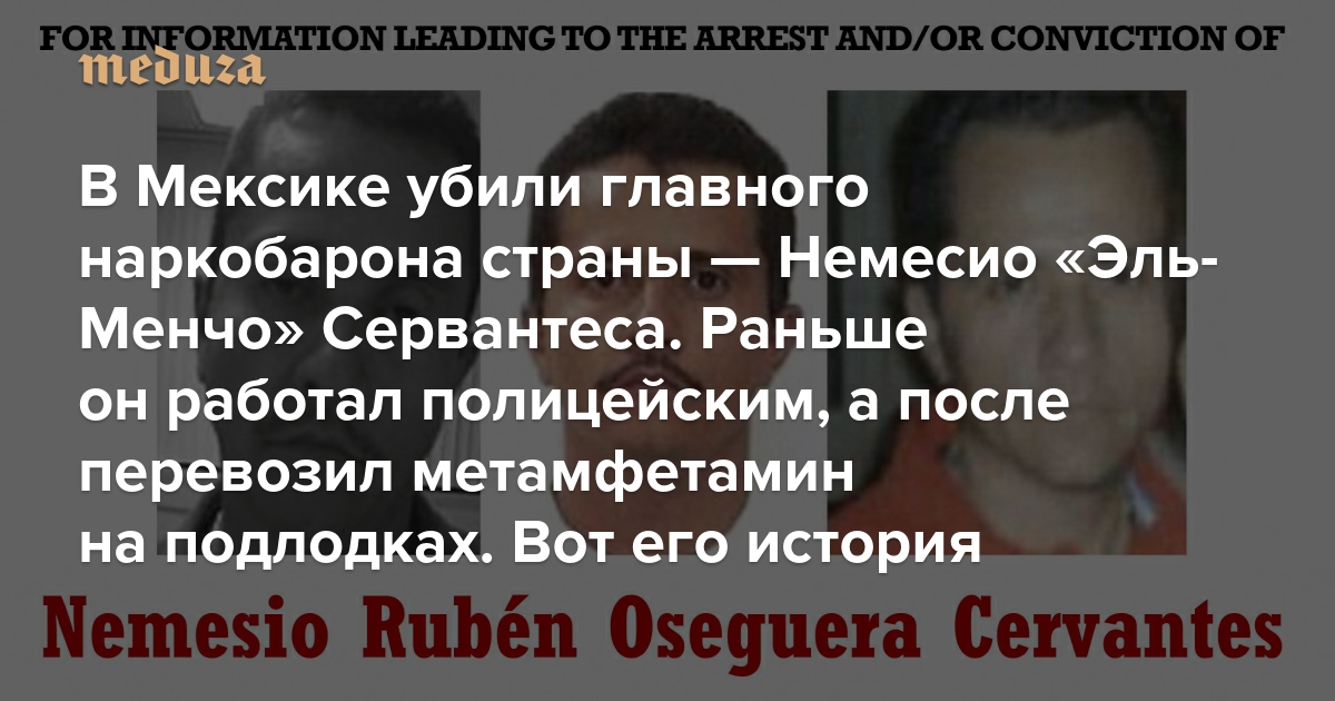 Эль-Менчо был самым разыскиваемым человеком в стране. Правительство США предлагало 15 миллионов долларов любому, кто предоставит информацию, которая поможет его поймать. «Медуза» рассказывает, как Немесио «Эль-Менчо» Сервантес прошел путь от фермера до главного мексиканского наркобарона и даже успел поработать полицейским.