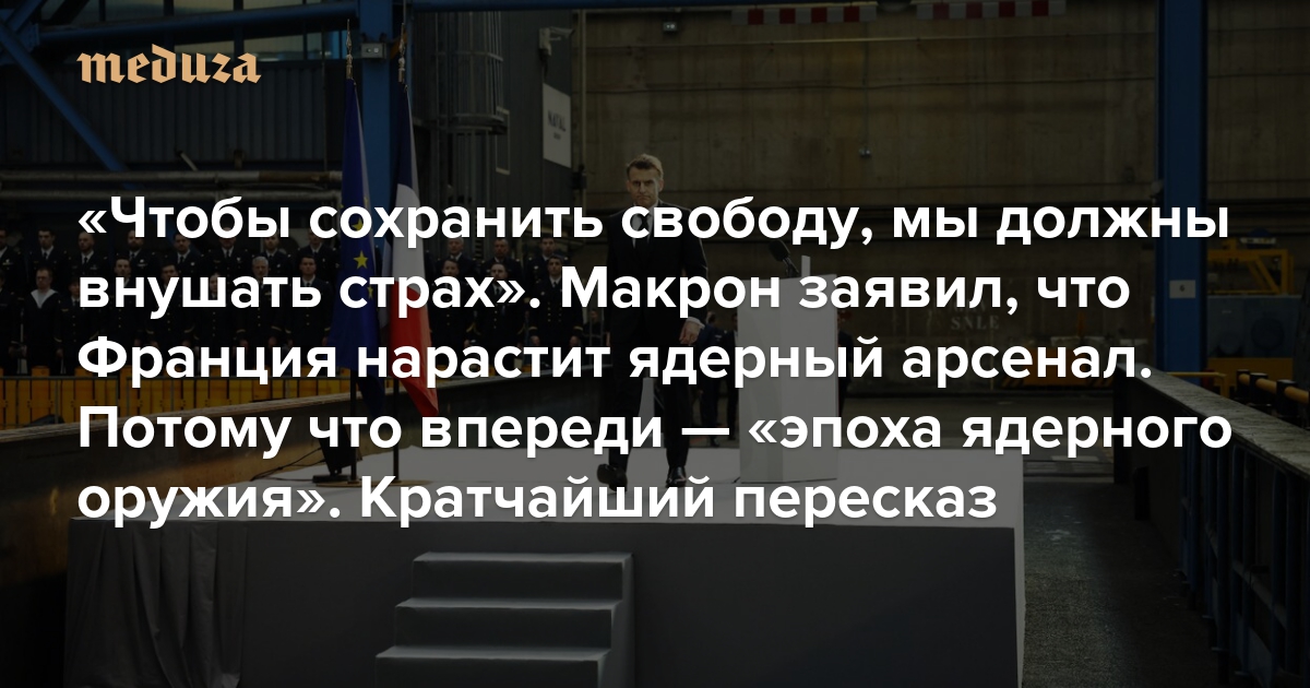 «Чтобы сохранить свободу, мы должны внушать страх» Макрон заявил, что Франция будет наращивать ядерный арсенал. Потому что впереди — «эпоха ядерного оружия». Кратчайший пересказ