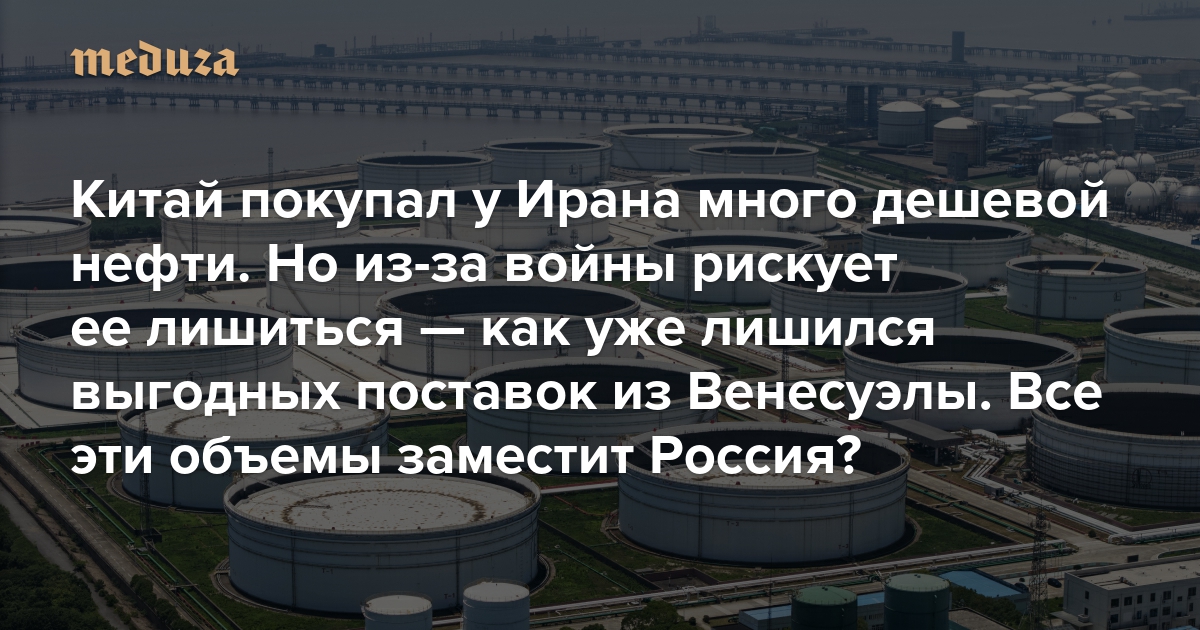Китай покупал у Ирана много дешевой нефти. Но из-за войны рискует ее лишиться — как уже лишился выгодных поставок из Венесуэлы Все эти объемы заместит Россия? Материал Carnegie Politika