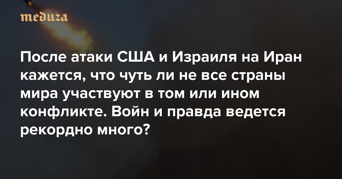 После атаки США и Израиля на Иран кажется, что чуть ли не все страны мира участвуют в том или ином конфликте. Войн и правда ведется рекордно много? Смотря что называть войнами — и смотря откуда отмерять рекорд