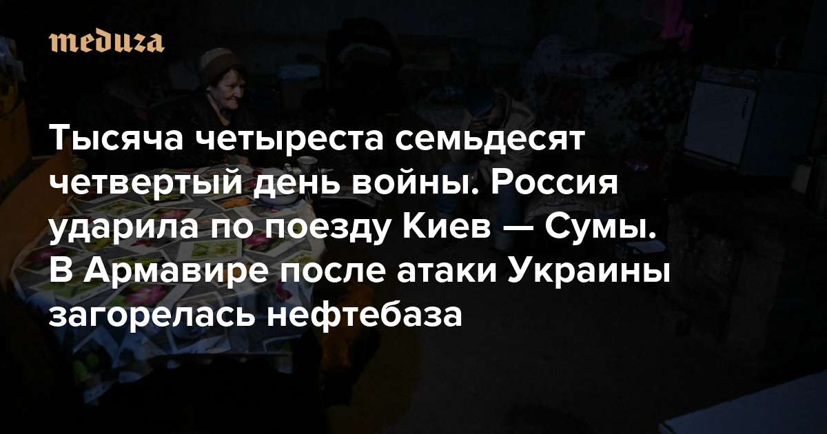 Война Тысяча четыреста семьдесят четвертый день. Россия ударила по поезду Киев — Сумы. В Армавире после атаки Украины загорелась нефтебаза