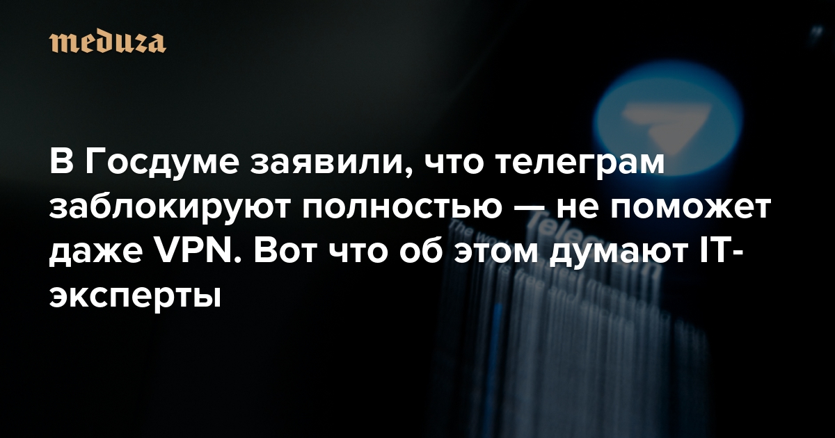 В Госдуме заявили, что телеграм заблокируют полностью — не поможет даже VPN Вот что об этом думают IT-эксперты