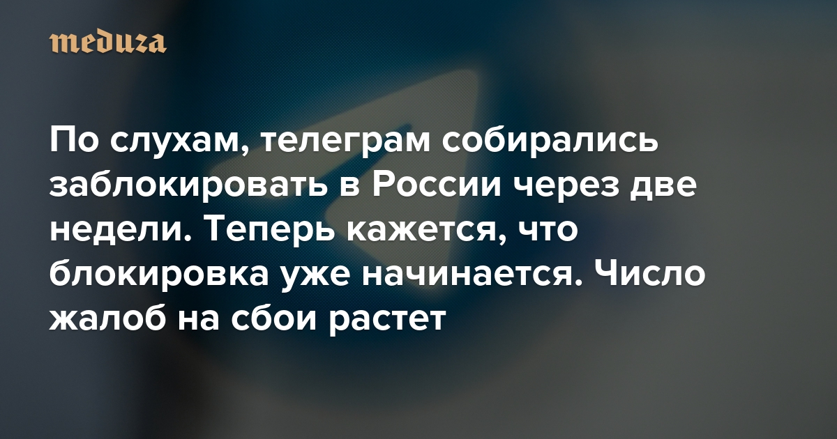 По слухам, телеграм собирались заблокировать в России через две недели. Теперь кажется, что блокировка уже начинается. Число жалоб на сбои растет Главное о том, что происходит