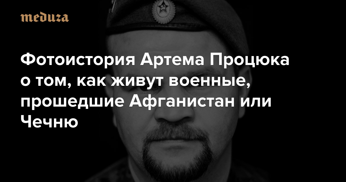 С февраля этого года фотограф Артем Процюк снимал бывших военных, переживших посттравматическое расстройство после афганской или чеченской войн. Каждого он просил показать какую-нибудь вещь, связанную с военными действиями, а потом рассказать про возвращение в мирную жизнь. «Медуза» публикует фотоисторию Процюка вместе с монологами бывших военных.