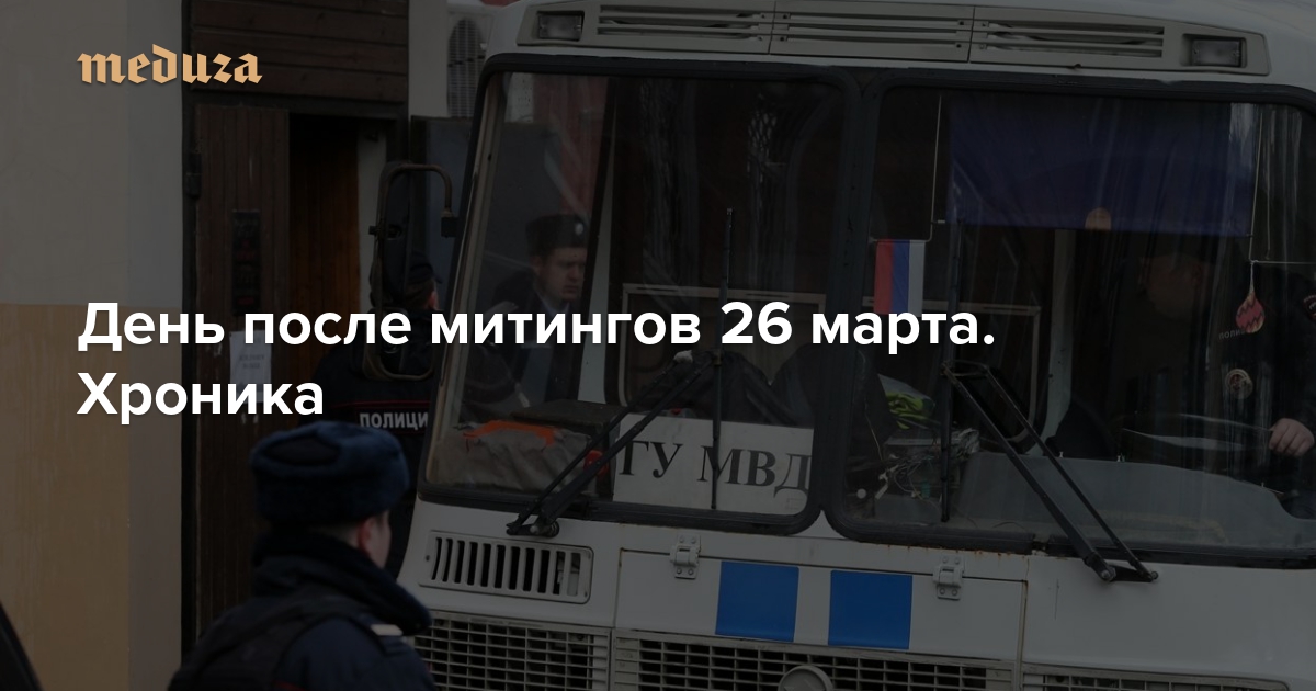 26 марта по всей стране состоялись антикоррупционные митинги, на которые вышли десятки тысяч человек. Многие из них были задержаны — массовые задержания были в Москве, Петербурге, Махачкале и других городах. Некоторые из задержанных были оставлены в ОВД на ночь, 27 марта по их делам пройдут суды. «Медуза» следит за всем, что происходит, в режиме реального времени.