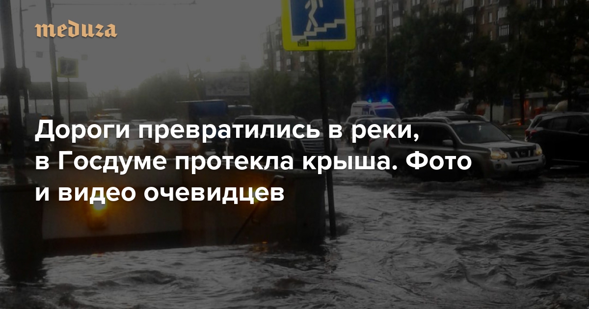 Из-за ливня днем 14 июля в Москве затопило дороги и тротуары. Очевидцы выкладывают видео, на которых видны бурные потоки и огромные лужи. Кроме того, в Госдуме в пятницу протекла крыша — пришлось прервать заседание. «Медуза» следит за происходящим в столице в режиме реального времени.
