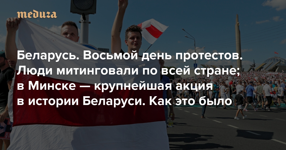Беларусь. Восьмой день протестов Люди митинговали по всей стране; в Минске — крупнейшая акция в истории Беларуси. Как это было
