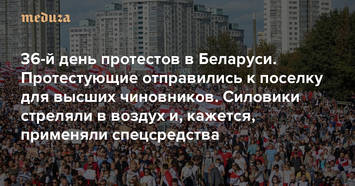 36-й день протестов в Беларуси. Как это было Протестующие отправились к элитному поселку для высших чиновников. Силовики стреляли в воздух и, кажется, применяли спецсредства