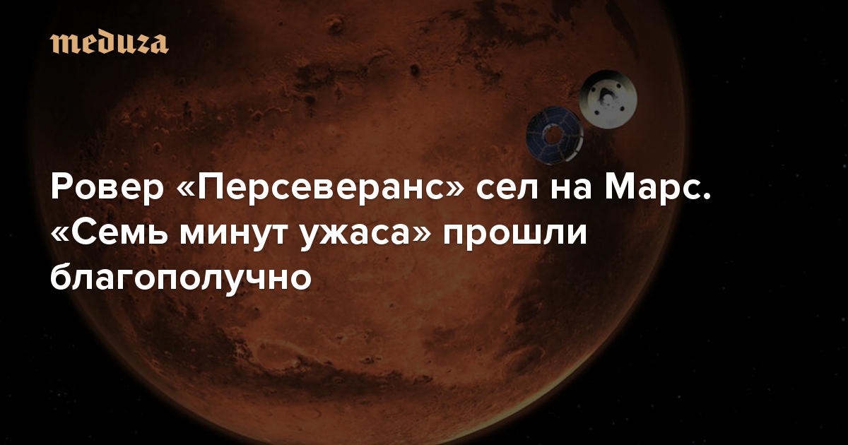 Вечером 18 февраля марсоход NASA «Персеверанс» добрался до своей цели — кратера Езеро на поверхности Марса. Саму посадку ровера называют «семью минутами ужаса»: аппарат сбрасывал скорость и выбирал подходящий участок для посадки в полностью автоматическом режиме. «Медуза» следила за последними минутами «Персеверанса» в космосе и его посадкой на Марс.