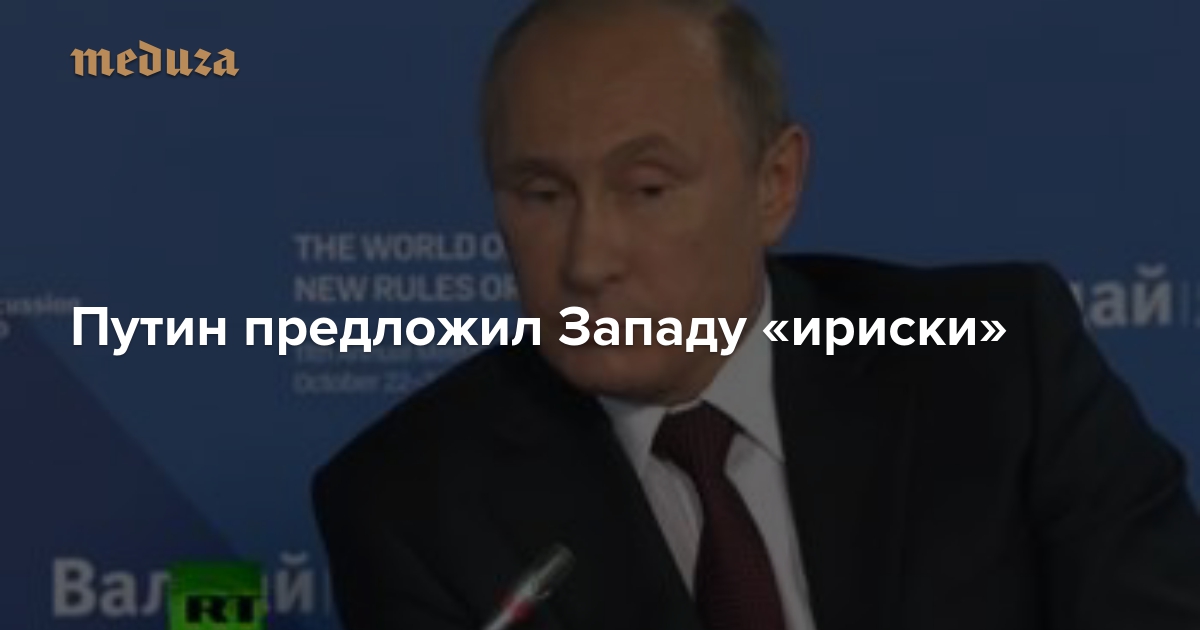 Пользователь видеосервиса Coub Alex Vender вырезал из речи Владимира Путина на Валдайском форуме фрагмент так, что президент стал предлагать западным партнерам разделить с Россией «ириски». В оригинальной записи выступления Путина (ни видеоряд, ни звук Alex Vender не изменил) речь шла о рисках в связи с конфликтом на Украине.