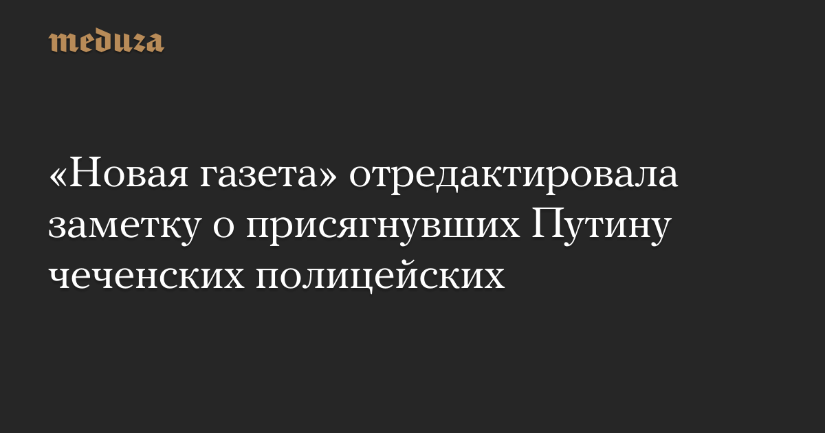 «Новая газета» отредактировала заметку о сотрудниках МВД Чечни, которые 28 декабря присягнули на верность Владимиру Путину. Из заметки исчезло упоминание о 500 полицейских, отказавшихся подписать противозаконные рапорты даже под угрозой увольнения.
