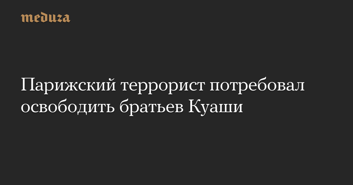 Вооруженный мужчина, захвативший не менее пяти человек на востоке Парижа, заявил, что будет удерживать заложников до тех пор, пока полиция не освободит братьев Куаши. Братья, убившие 12 человек в редакции газеты Charlie Hebdo 7 января, блокированы в здании типографии под Парижем.