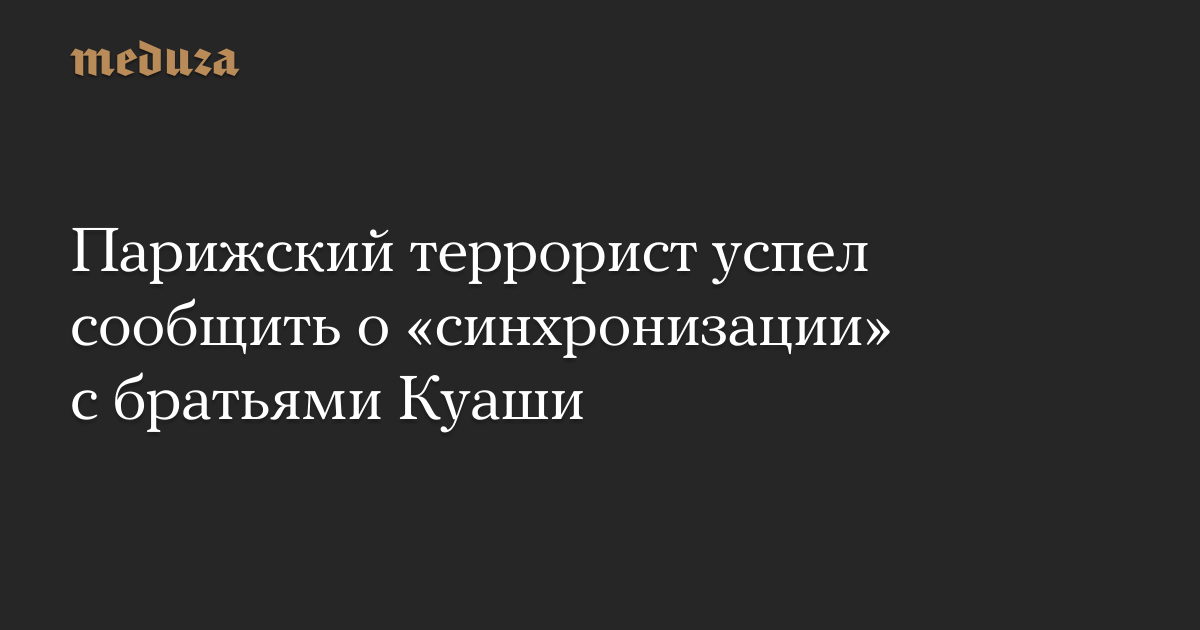 Парижский террорист успел сообщить о «синхронизации» с братьями Куаши