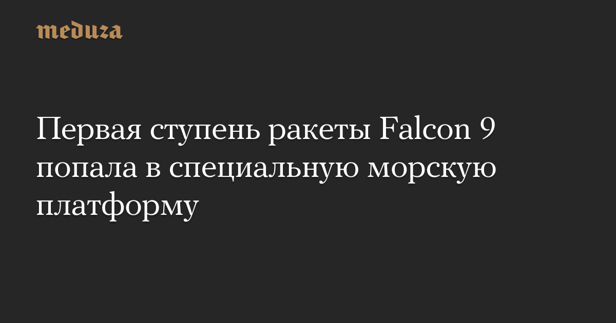 Первая ступень ракеты Falcon 9 попала в специальную морскую платформу