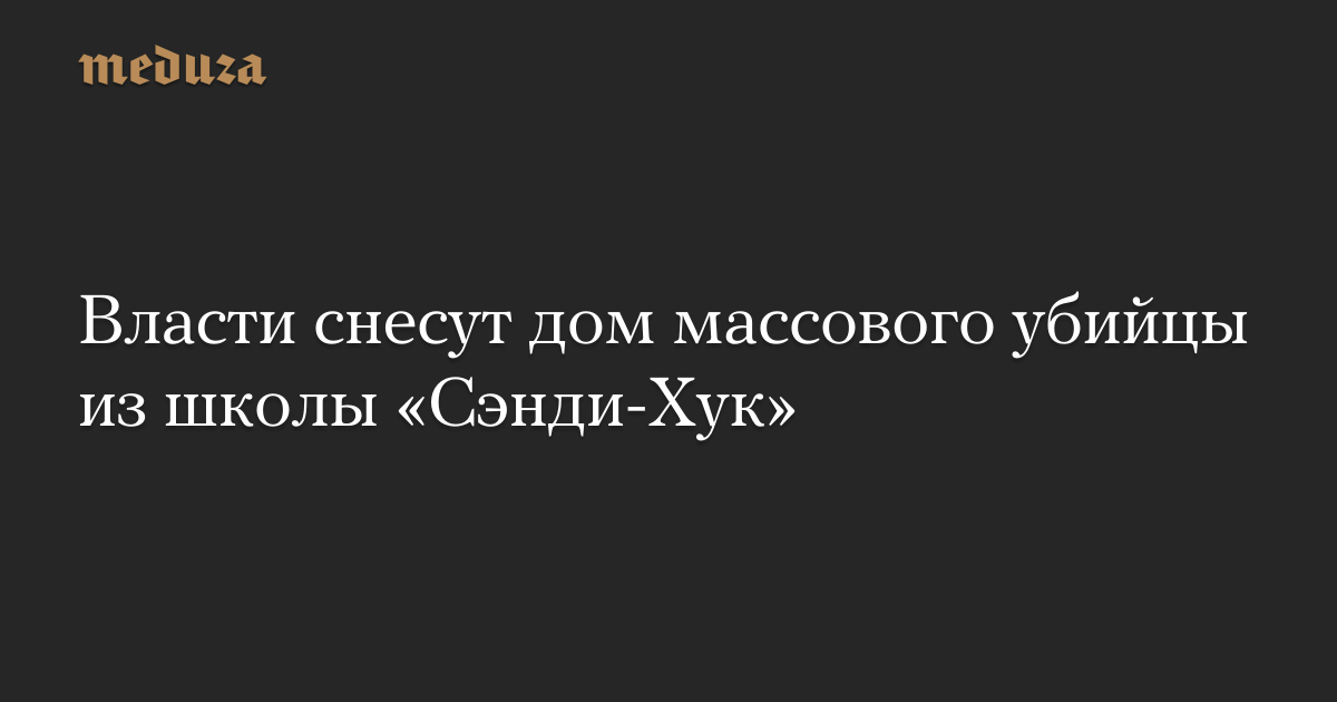 Власти снесут дом массового убийцы из школы «Сэнди-Хук»
