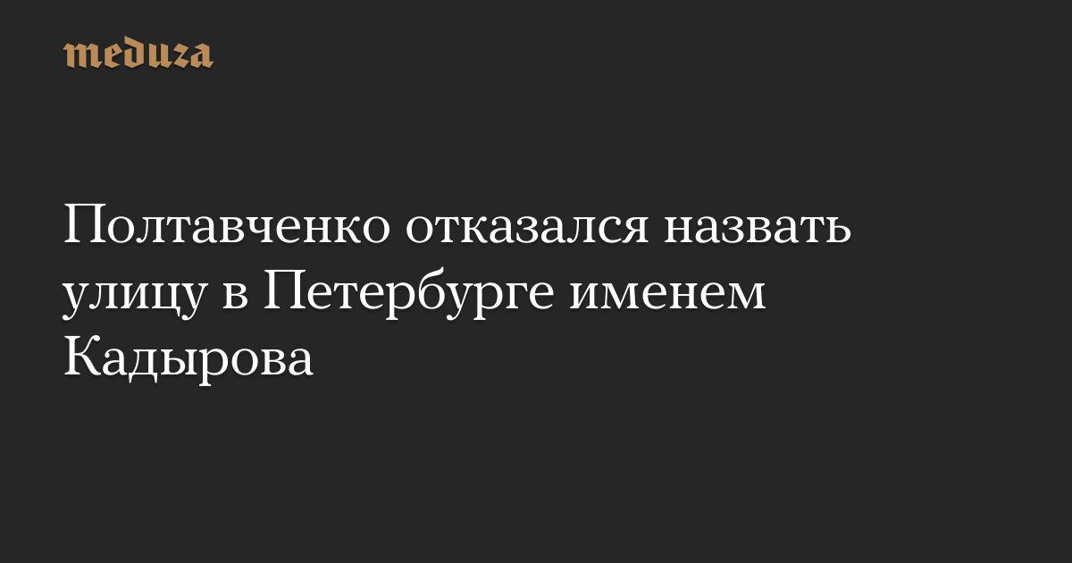 Губернатор также сослался на опрос читателей «Фонтанки.ру», по итогам которого 84% участников высказались против присвоения имени Кадырова какой-либо из питерских улиц.