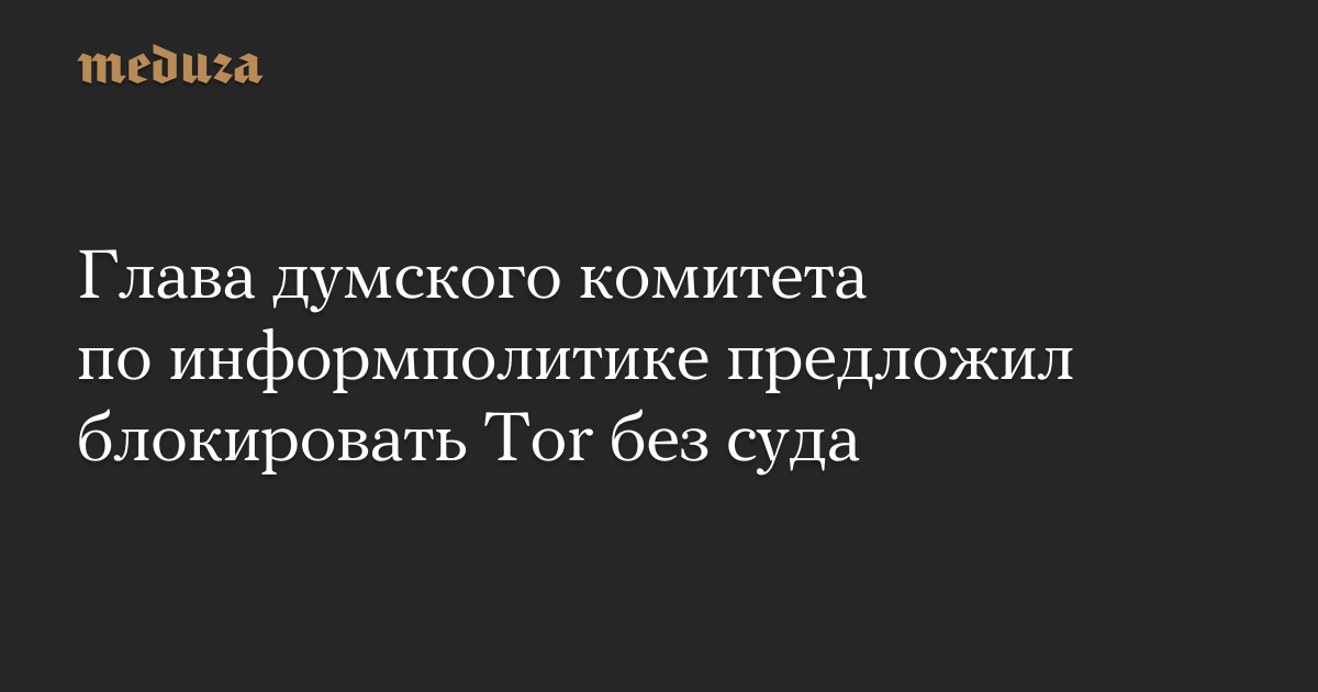 Глава думского комитета по информполитике предложил блокировать Tor без суда