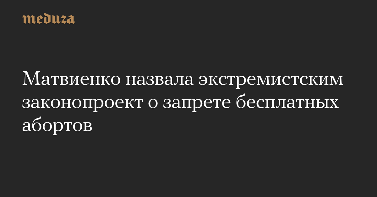 Спикер Совета Федерации Валентина Матвиенко выступила против принятия законопроекта, согласно которому аборты будут выведены из системы обязательного медицинского страхования, а проведение таких операций в частных клиниках будет запрещено. Матвиенко заявила, что «эти экстремистские предложения, носящие запретительный характер, приведут к пагубным последствиям».