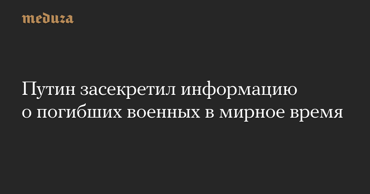 Информация о погибших военнослужащих «в мирное время в период проведения спецопераций» стала государственной тайной. Соответствующий указ подписал президент РФ Владимир Путин 28 мая. До этого к государственной тайне относилась только информация о погибших в военное время.