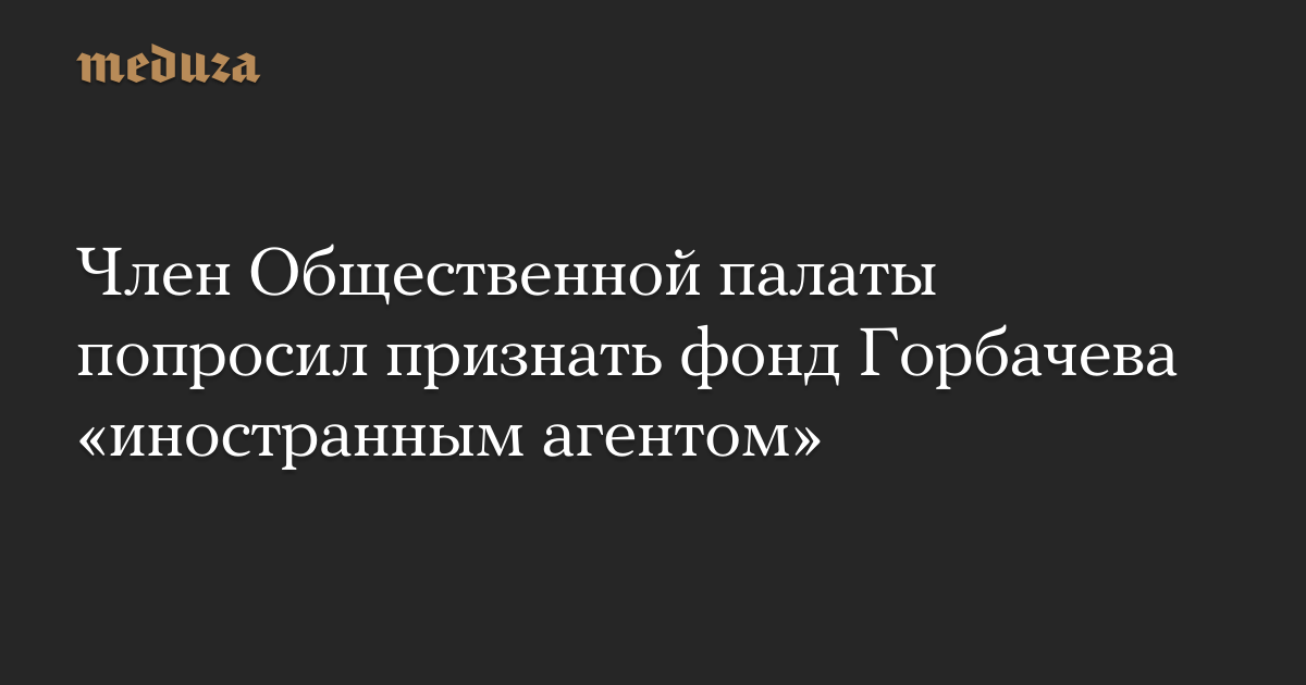 Член Общественной палаты попросил признать фонд Горбачева «иностранным агентом»