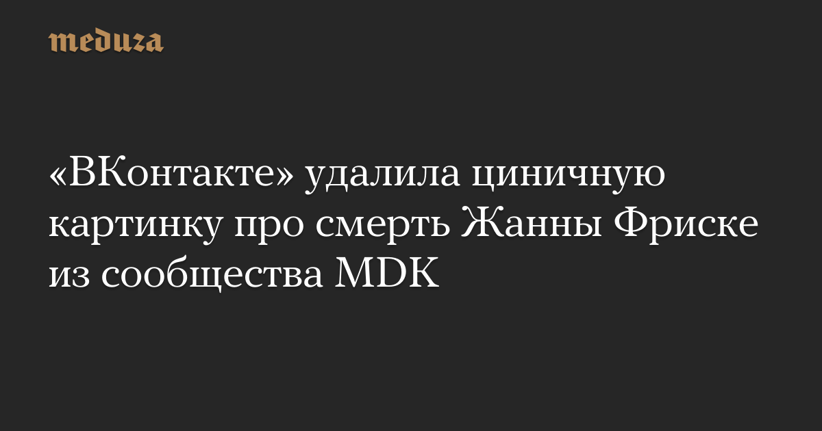 «ВКонтакте» удалила циничную картинку про смерть Жанны Фриске из сообщества MDK