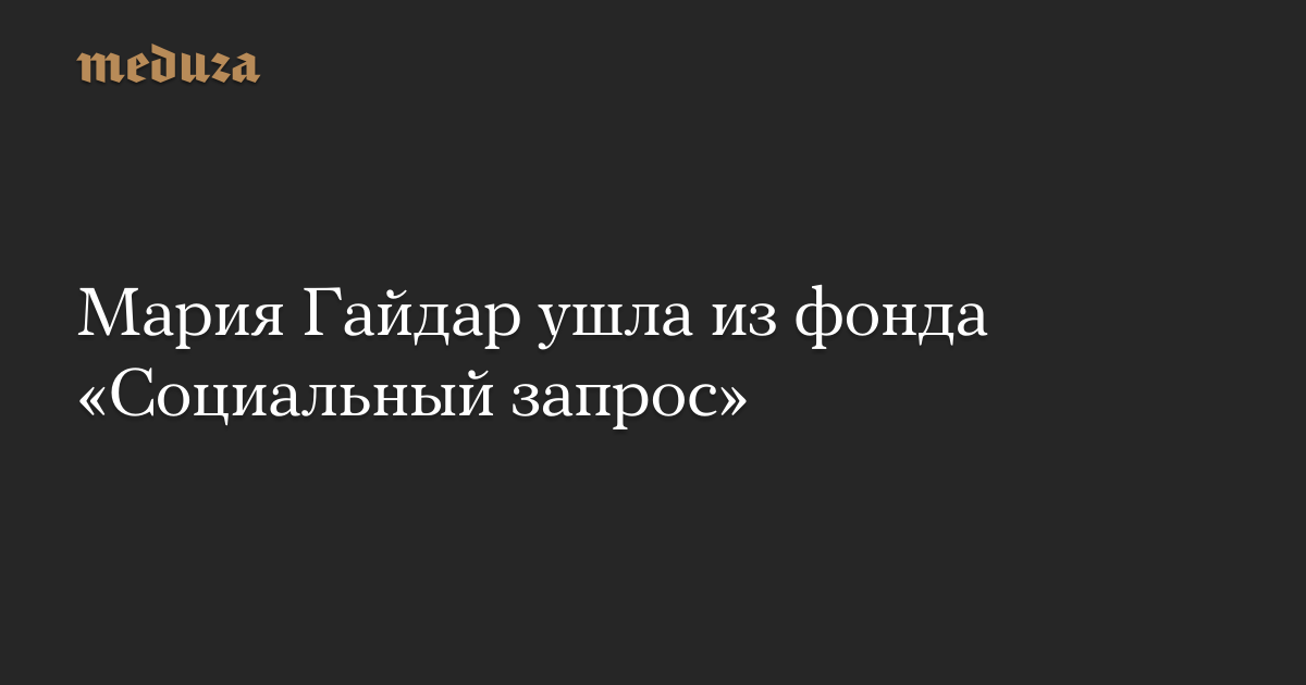Мария Гайдар ушла из фонда «Социальный запрос»