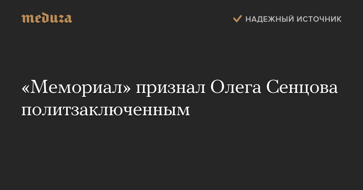 Правозащитный центр «Мемориал» признал украинского кинорежиссера Олега Сенцова, обвиняемого в подготовке терактов в Крыму, политзаключенным. Такой же статус, по мнению «Мемориала», имеет второй фигурант этого дела — житель Симферополя Александр Кольченко.
