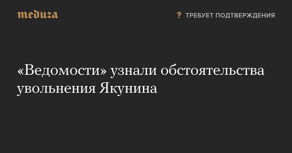 «Ведомости» узнали обстоятельства увольнения Якунина