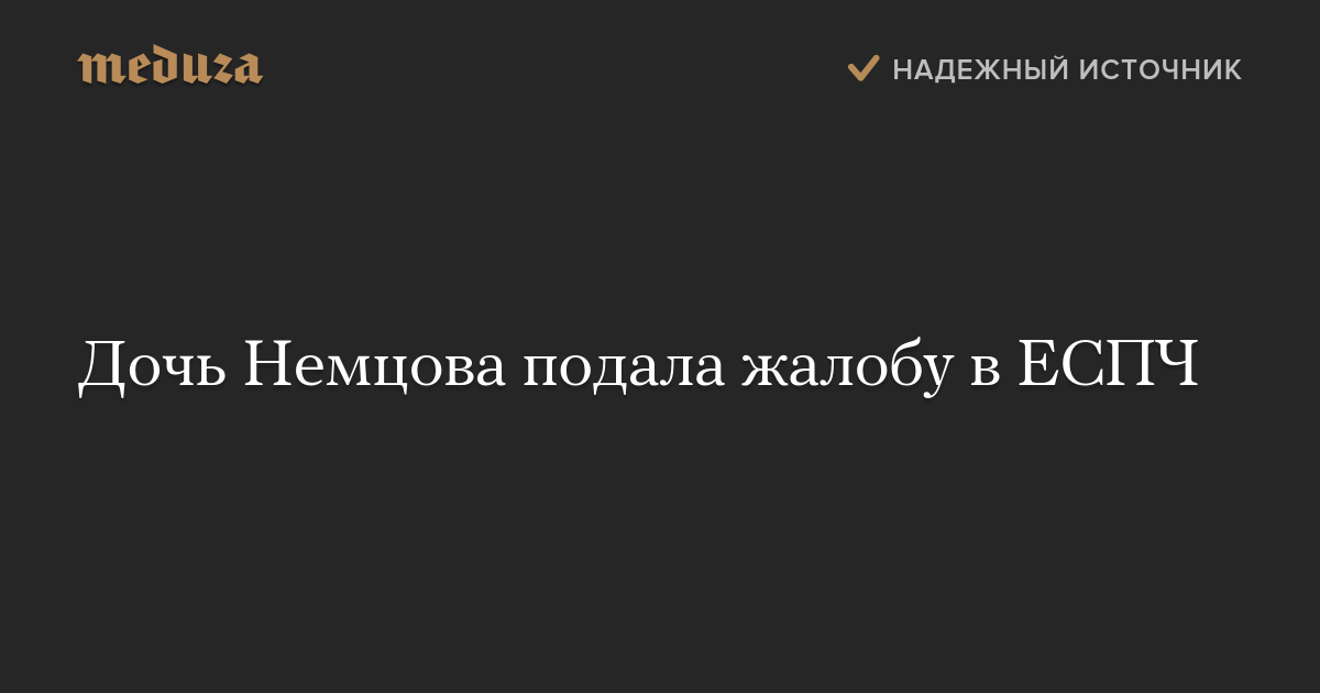 Жанна Немцова обратилась в Европейский суд по правам человека с жалобой на действия российских властей в связи с убийством ее отца Бориса Немцова.