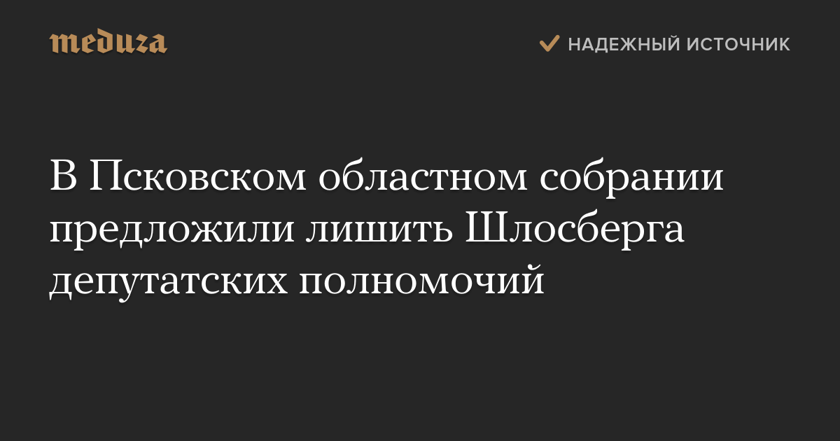 В Псковском областном собрании предложили лишить Шлосберга депутатских полномочий
