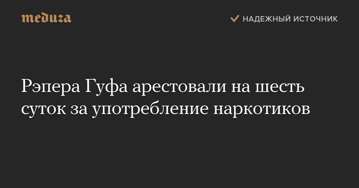 Рэп-исполнитель Алексей Долматов, известный под сценическим псевдонимом Гуф, арестован на шесть суток по решению суда в Красноярске за употребление наркотиков. Анализы крови рэпера показали, что он употреблял кокаин и марихуану.
